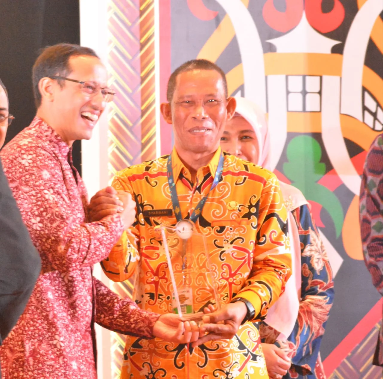 Bupati Bulungan Syarwani, S.Pd.M.Si didampingi Sekretaris Daerah (Sekda), Risdianto, S.Pi., M.Si serta Kepala Dinas Pendidikan Drs. Suparmin S. Menerima penghargaan langsung dari Menteri Pendidikan, Kebudayaan, Riset, dan Teknologi Republik Indonesia Nadiem Anwar Makarim.