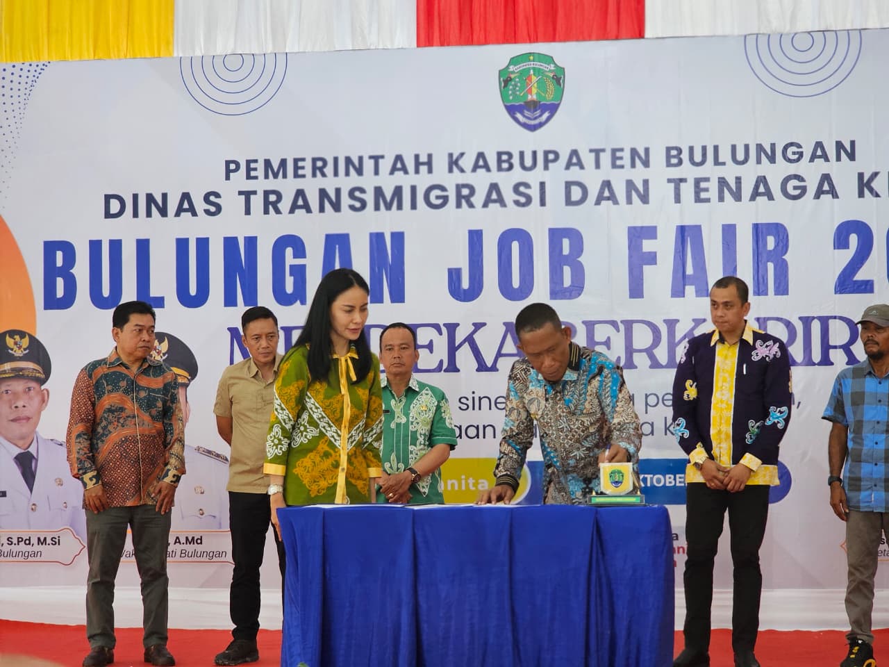 BULUNGAN,TANJUNGNEWS.COM – Pemerintah Kabupaten (Pemkab) Bulungan melalui Dinas Tenaga Kerja dan Transmigrasi (Disnakertrans) menggelar Bulungan Job Fair 2025 di Gedung Wanita, Jalan Serindit, Tanjung Selor, Kamis (16/10/25)