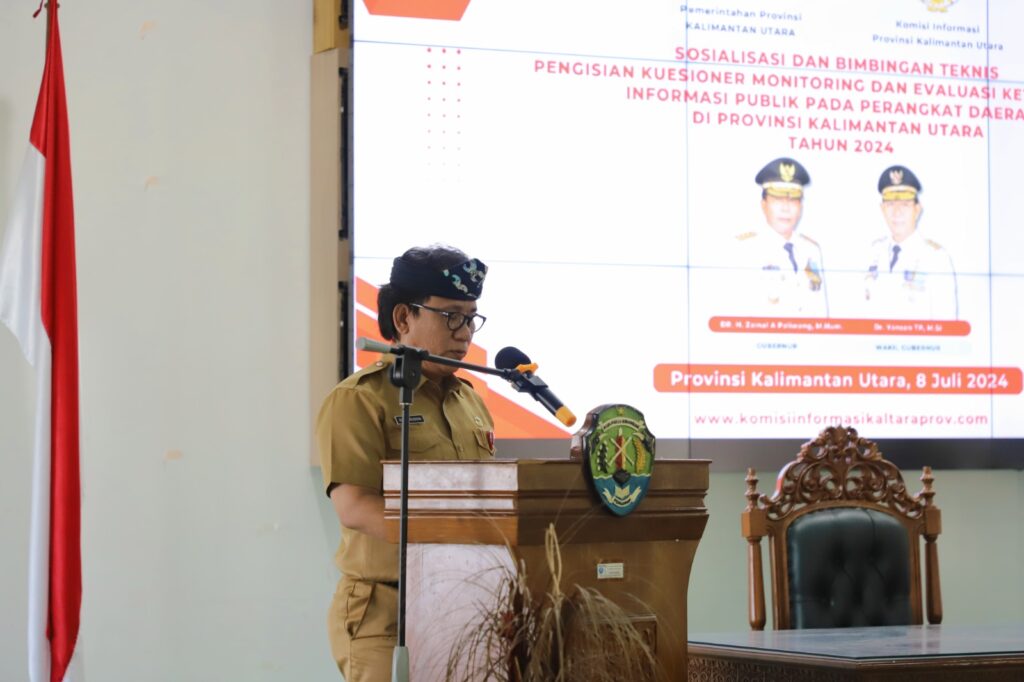 TANJUNG SELOR – Plh. Asisten Bidang Perekonomian dan Pembangunan Setprov Kaltara, Burhanuddin S. Sos., M.Si membuka Kegiatan Sosialisasi dan Bimbingan Teknis Pengisian Kuesioner Monitoring Evaluasi