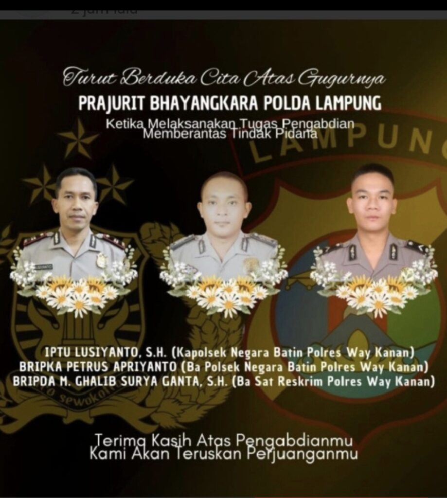 TANJUNGNEWS.COM – Tiga anggota kepolisian Polres Way Kanan tewas saat menggerebek lokasi sabung ayam, Senin (17/3), di Kampung Karang Manik, Kec. Negara Batin, Kab. Way