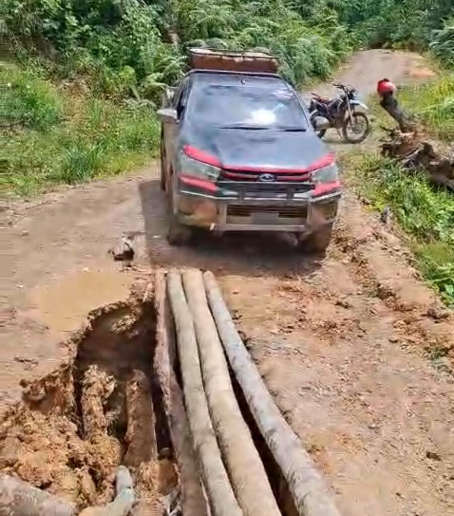 APAU KAYAN, TANJUNGNEWS.COM— Kondisi akses jalan darat dari wilayah perbatasan di Apau Kayan, Kabupaten Malinau, Kalimantan Utara (Kaltara) menuju Mahakam Ulu (Mahulu), Kalimantan Timur (Kaltim),