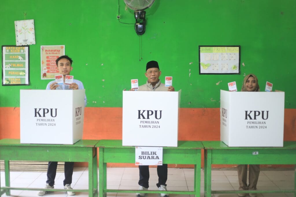 TANJUNGNEWS.COM – Meski disertai gerimis Bupati Bulungan Syarwani, S.Pd.M.Si beserta istri Sri Nurhandayani dan anak pertamanya menyalurkan hak pilihnya di TPS 001 yang berada di