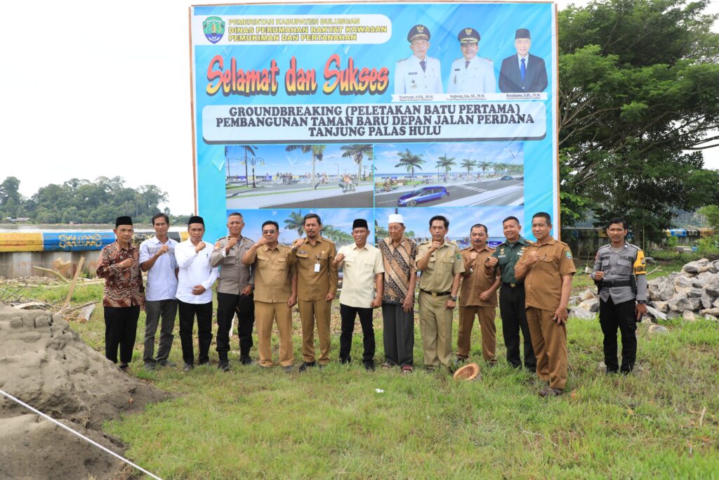 TANJUNG PALAS- Pemerintah Kabupaten Bulungan melalui Dinas Perumahan Rakyat, Kawasan Permukiman dan Pertanahan (DPRKPP) melakukan pembangunan taman baru di Tepian Sungai Kayan, depan Jalan Perdana,