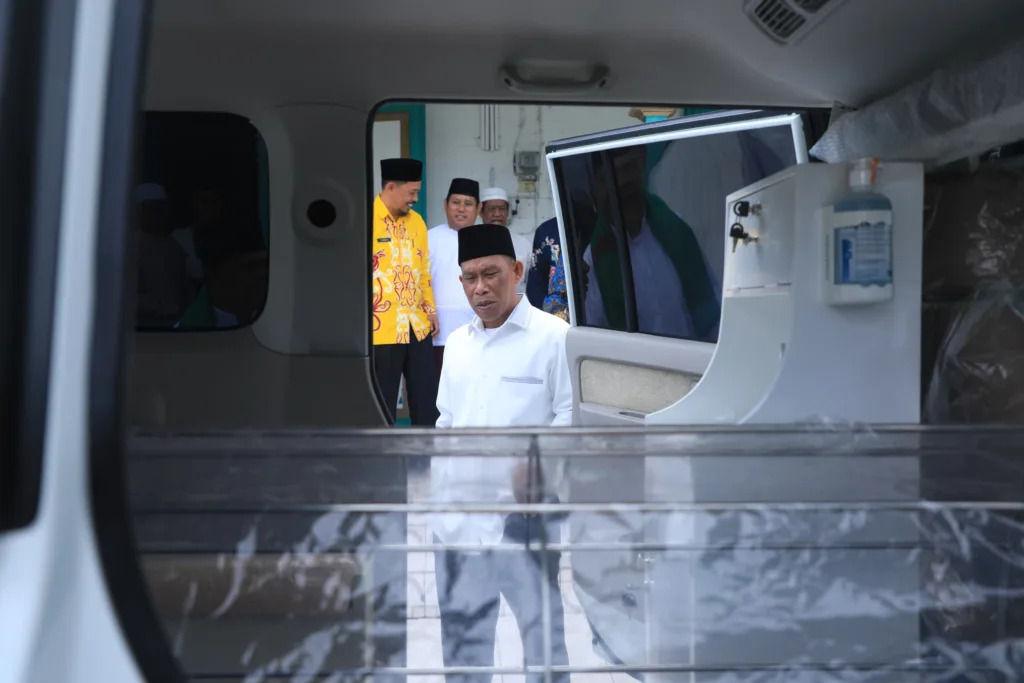 TANJUNG PALAS – TANJUNGNEWS.COM- Bupati Bulungan Syarwani.,S.Pd.,M.Si didampingi Sekretaris Daerah, Risdianto,S.Pi.,M.Si, serta jajaran perangkat daerah Kabupaten Bulungan memberikan bantuan 1 unit Mobil Jenazah untuk Masjid