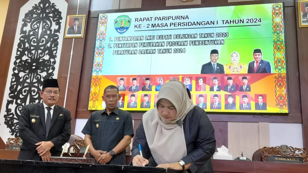 BULUNGAN-TANJUNGNEWS.COM – Bupati bersama wakil Bupati Bulungan menghadiri Rapat Paripurna penyampaian Laporan Keterangan Pertanggung Jawaban (LKPJ) Bulungan tahun 2023 dan penetapan perubahan program pembentukan Peraturan